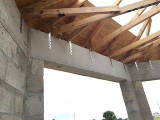 - Steel is placed from the footing up through the block walls and into tie-beam. Then we anchor the tie-beam to the truss with hurricane straps.